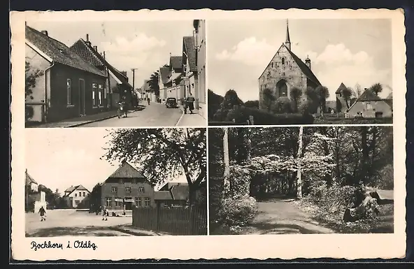 AK Bockhorn i. Oldbg., Kirche, Waldweg, Strassenpartie