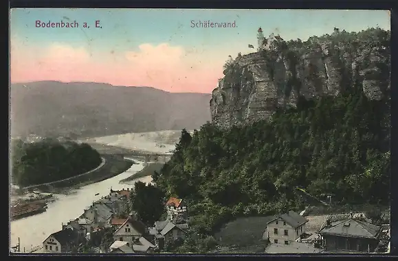 AK Bodenbach a. E., Schäferwand mit Elbe