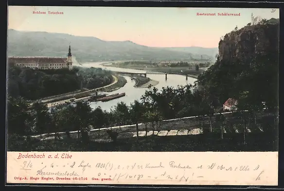 AK Bodenbach a. d. Elbe, Schloss Tetschen und Restaurant Schäferwand