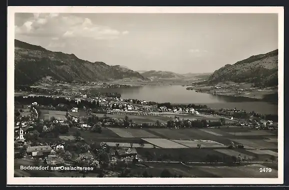 AK Bodensdorf am Ossiachersee, Totalansicht mit Seeblick von oben