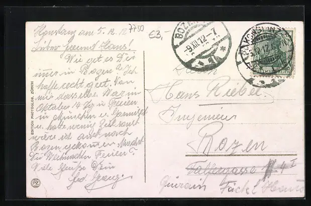 alte Ansichtskarte, gelaufen 1912, guter Zustand