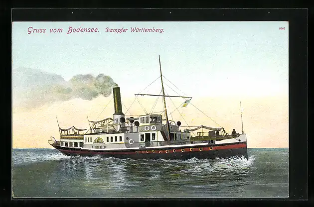 AK Bodensee, Dampfer Württemberg auf Fahrt