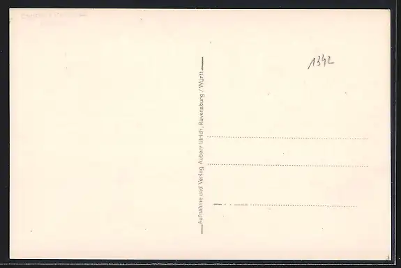 Personenbezogene Daten auf der Rückseite der Karte wurden durch blauen Textmarker unkenntlich gemacht. Die blauen Stellen sind auf die Vorderseite durchgeweicht und wirken sich negativ auf das Postkartenfoto aus