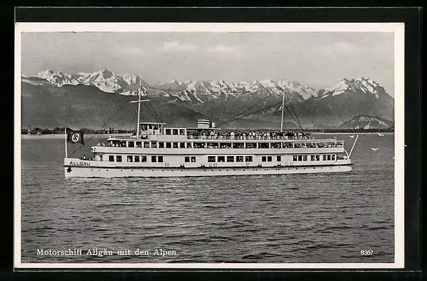 AK Bodensee-Motorschiff Allgäu mit den Alpen,