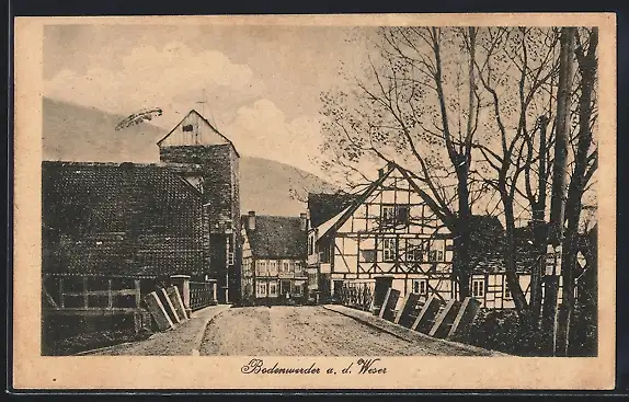 AK Bodenwerder a. d. Weser, Strassenpartie mit Fachwerkhaus