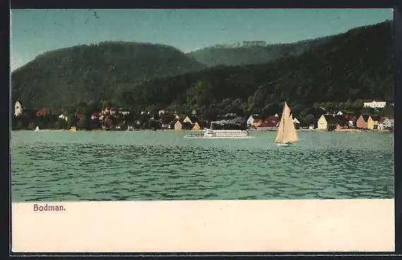AK Bodman, Ortsansicht mit Dampfer