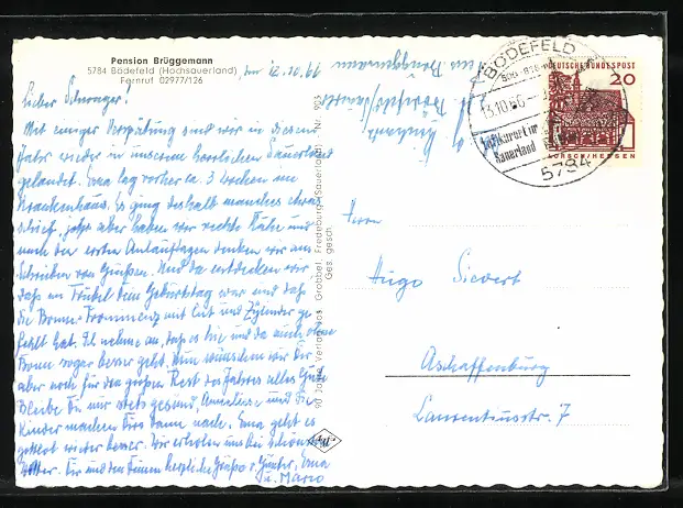 alte Ansichtskarte, gelaufen 1966, Eckknick re. oben, Einriss re. oben, guter Zustand