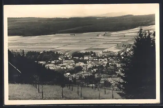 AK Böhmisch-Trübau, Panorama mit Bäumen