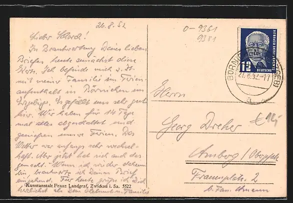 alte Ansichtskarte, gelaufen 1952, guter Zustand