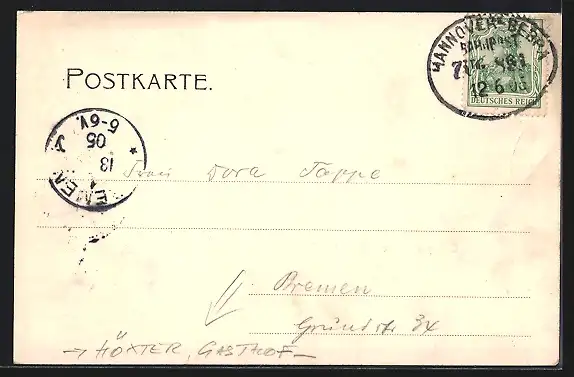 alte Ansichtskarte, gelaufen 1905, Stempelspur, Bugspur li. oben, guter Zustand