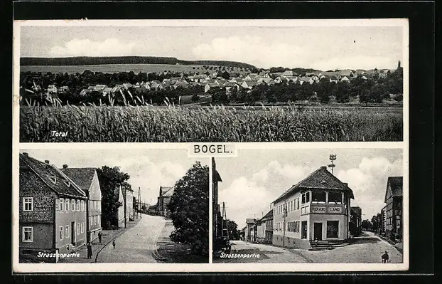 AK Bogel, Totalansicht und Strassenpartie mit Geschäft v. Richard Lang