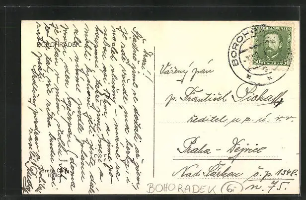 AK Bohoradek, Ortsansicht aus der Vogelschau