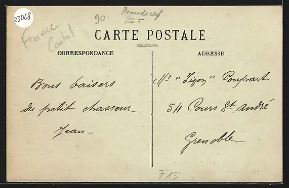 Personenbezogene Daten auf der Rückseite der Karte wurden durch blauen Textmarker unkenntlich gemacht. Die blauen Stellen sind auf die Vorderseite durchgeweicht und wirken sich negativ auf das Postkartenfoto aus