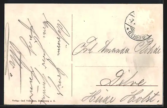 alte Ansichtskarte, gelaufen, Briefmarke entfernt, rückseitig Oberflächenschaden, guter Zustand