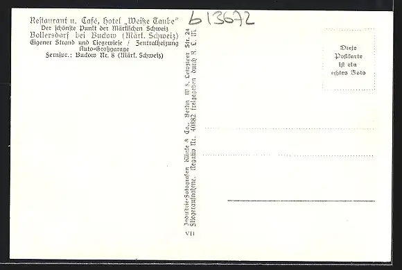 AK Bollersdorf /Märk. Schweiz, Hotel Weisse Taube
