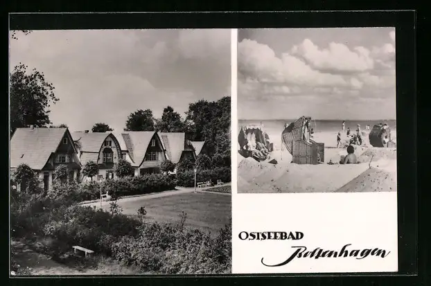 AK Boltenhagen, Wohnhäuser und Badegäste am Ostseestrand