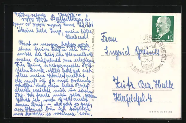 alte Ansichtskarte, gelaufen 1964, guter Zustand