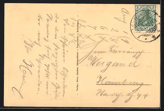 gelaufen 1912, Eckknick oben li., guter Zustand