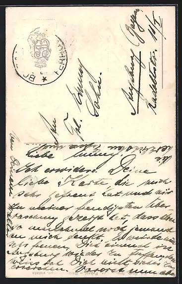 alte Ansichtskarte, gelaufen, Briefmarke entfernt, guter Zustand
