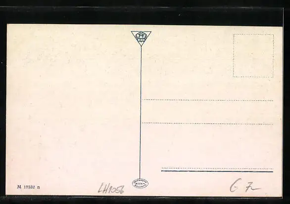 Personenbezogene Daten auf der Rückseite der Karte wurden durch blauen Textmarker unkenntlich gemacht. Die blauen Stellen sind auf die Vorderseite durchgeweicht und wirken sich negativ auf das Postkartenfoto aus
