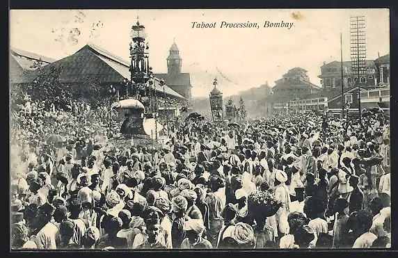 AK Bombay, Taboot Procession, Menschen bei Prozession
