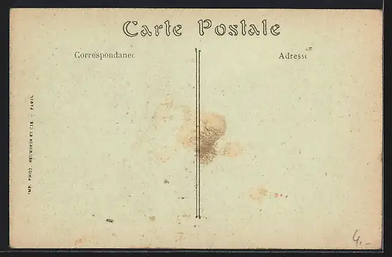 Personenbezogene Daten auf der Rückseite der Karte wurden durch blauen Textmarker unkenntlich gemacht. Die blauen Stellen sind auf die Vorderseite durchgeweicht und wirken sich negativ auf das Postkartenfoto aus