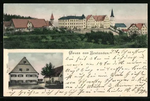 AK Bonlanden, Teilansicht der Ortschaft, Gehöft