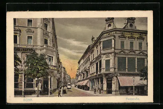 AK Bonn, Abendstimmung in der Poststrasse, Strassenbahn