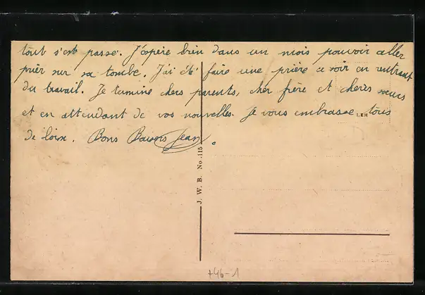 Personenbezogene Daten auf der Rückseite der Karte wurden durch blauen Textmarker unkenntlich gemacht. Die blauen Stellen sind auf die Vorderseite durchgeweicht und wirken sich negativ auf das Postkartenfoto aus