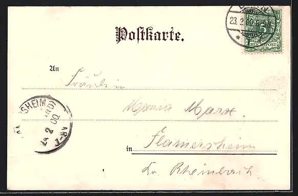 alte Ansichtskarte, gelaufen 1900, guter Zustand