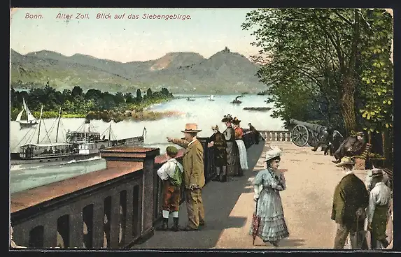 AK Bonn, Alter Zoll mit Blick auf das Siebengebirge
