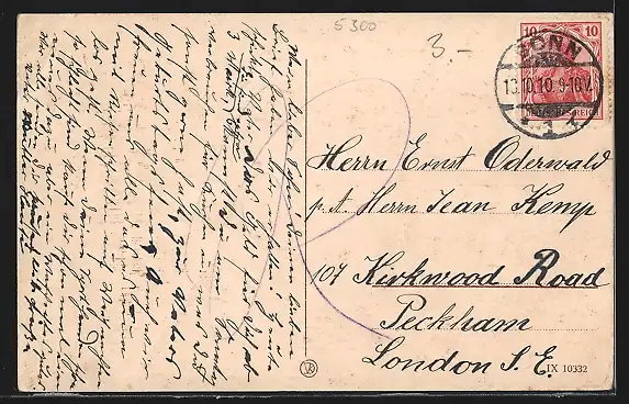 alte Ansichtskarte, gelaufen 1910, guter Zustand
