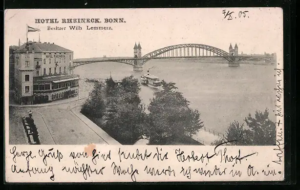 AK Bonn, Hotel Rheineck, Dampfer
