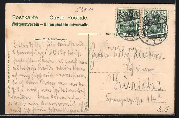 alte Ansichtskarte, gelaufen 1908, guter Zustand