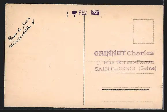 Personenbezogene Daten auf der Rückseite der Karte wurden durch blauen Textmarker unkenntlich gemacht. Die blauen Stellen sind auf die Vorderseite durchgeweicht und wirken sich negativ auf das Postkartenfoto aus
