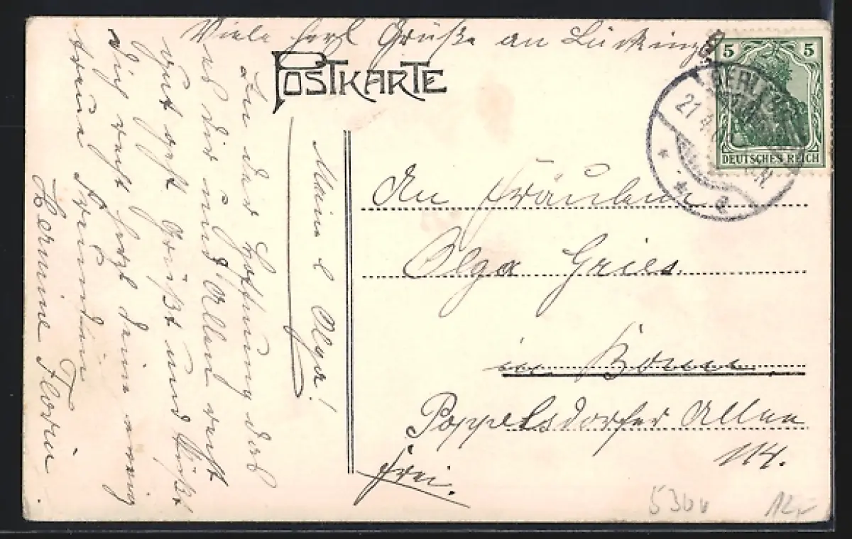 alte Ansichtskarte, gelaufen 1908, guter Zustand