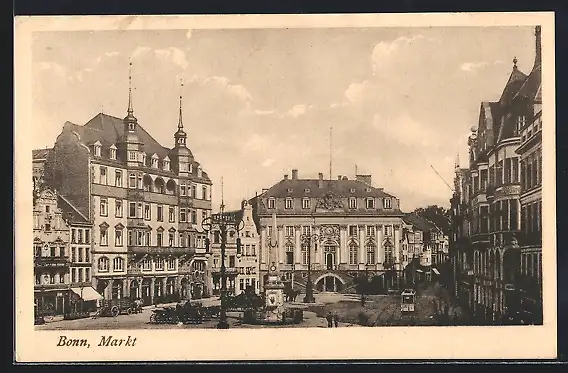 AK Bonn, Markt mit Denkmal aus der Vogelschau