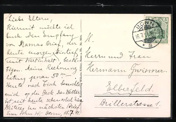 alte Ansichtskarte, gelaufen 1911, guter Zustand