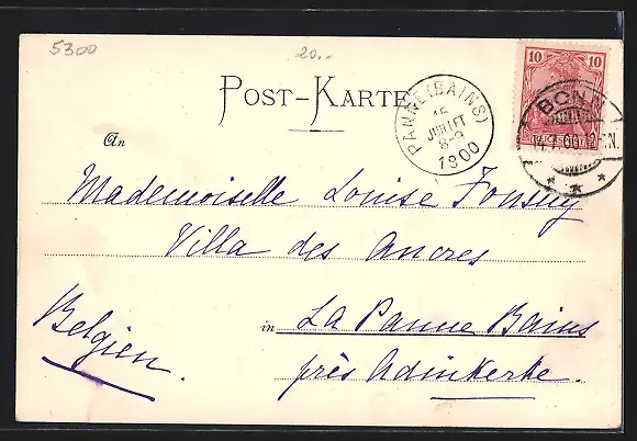 alte Ansichtskarte, gelaufen 1900, Eckknicke li., guter Zustand