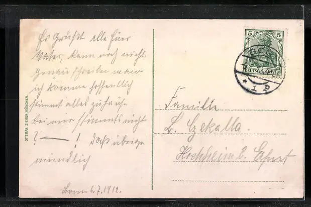 gelaufen 1912, Eckknick unten links, guter Zustand