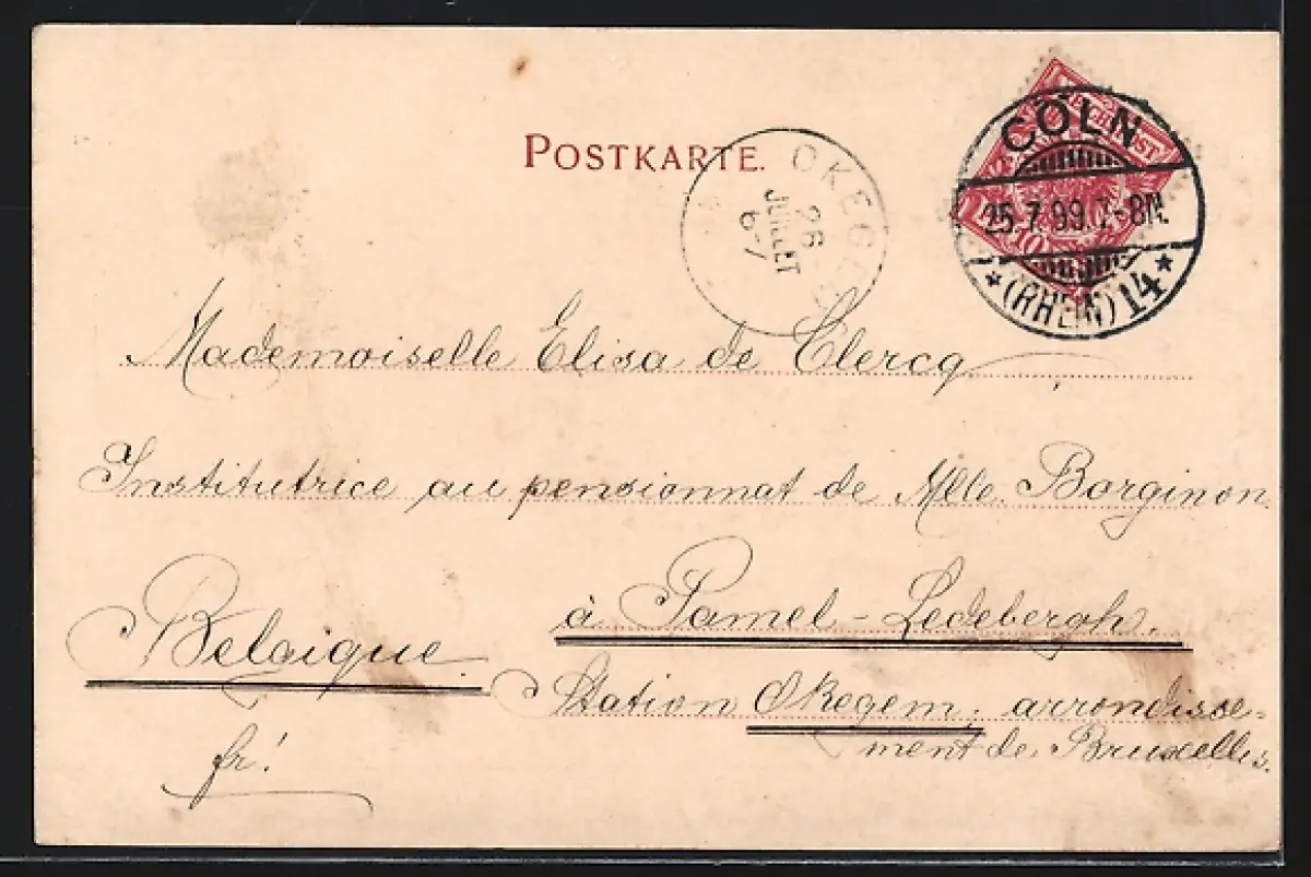 alte Ansichtskarte, gelaufen 1899, Stempelspur, guter Zustand