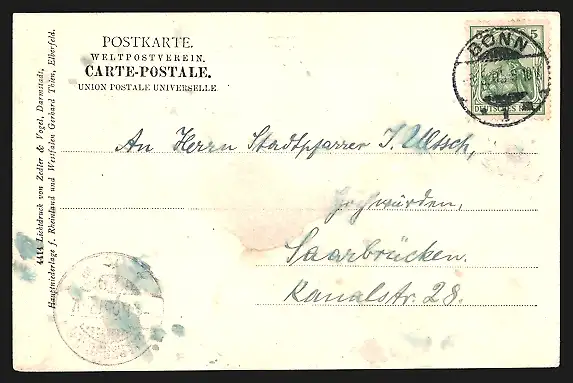 alte Ansichtskarte, gelaufen 1905, rückseitig Klebe- und Papierreste, guter Zustand