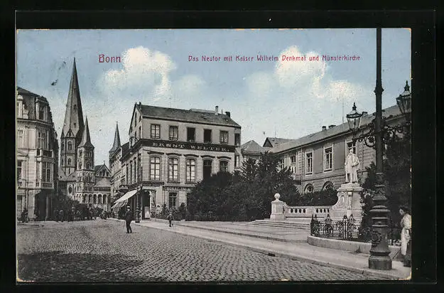 AK Bonn, Neutor mit Kaiser Wilhelm Denkmal und Münsterkirche
