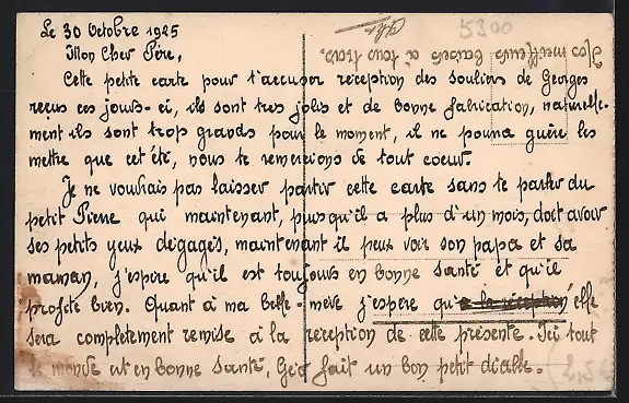 Personenbezogene Daten auf der Rückseite der Karte wurden durch blauen Textmarker unkenntlich gemacht. Die blauen Stellen sind auf die Vorderseite durchgeweicht und wirken sich negativ auf das Postkartenfoto aus