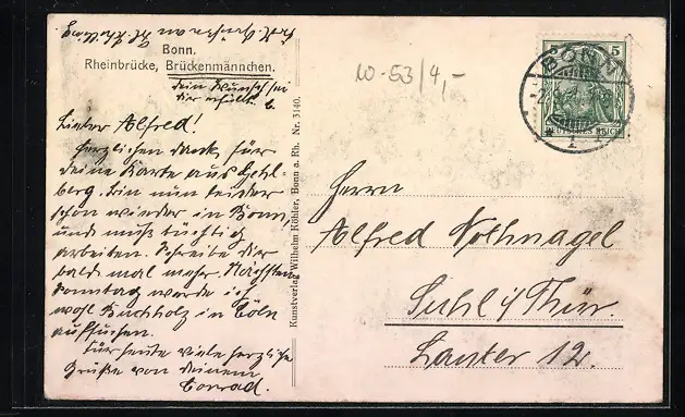 AK Bonn, Rheinbrücke, Brückenmännchen