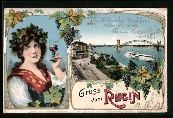 alte Ansichtskarte, gelaufen, Bugspur re. unten, Abriebspuren untere Kante, guter Zustand