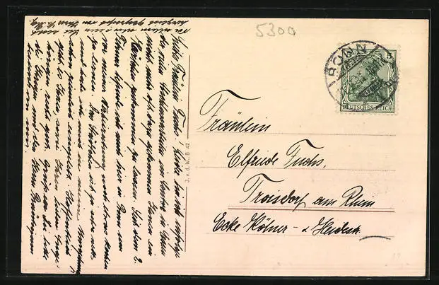 alte Ansichtskarte, gelaufen, Eckknick oben re., Stempelspur, guter Zustand