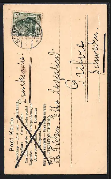 gelaufen 1906, Eckknicke li. unten u. re. oben, guter Zustand