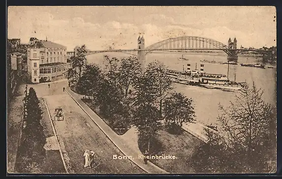 AK Bonn, Strassenpartie an der Rheinbrücke