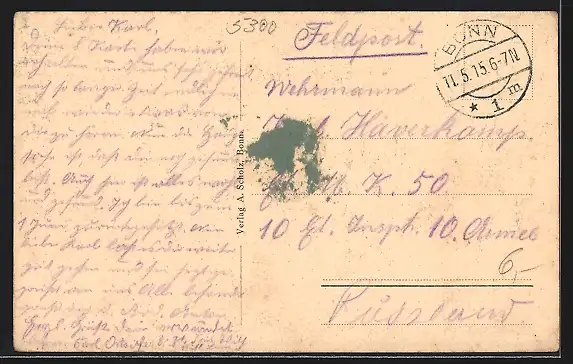 gelaufen 1915, rückseitig Klebe- und Papierreste, guter Zustand